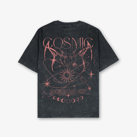 Cosmic Front And Back Print Washed T-Shirt