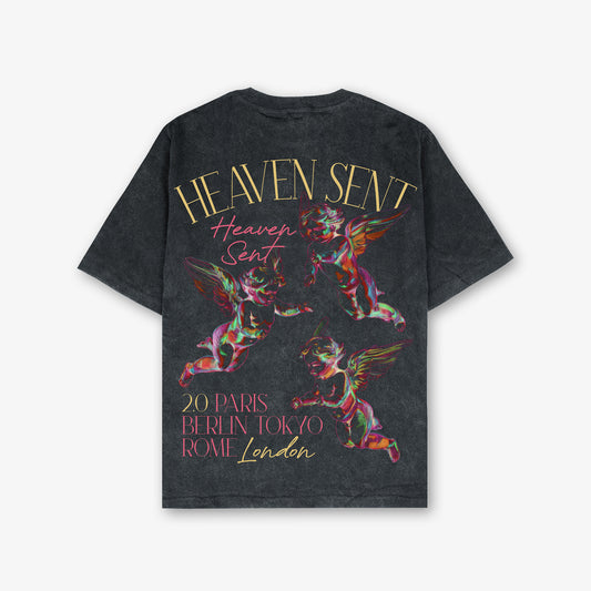 Heaven Sent Chalkboard Front And Back Print Washed T-Shirt
