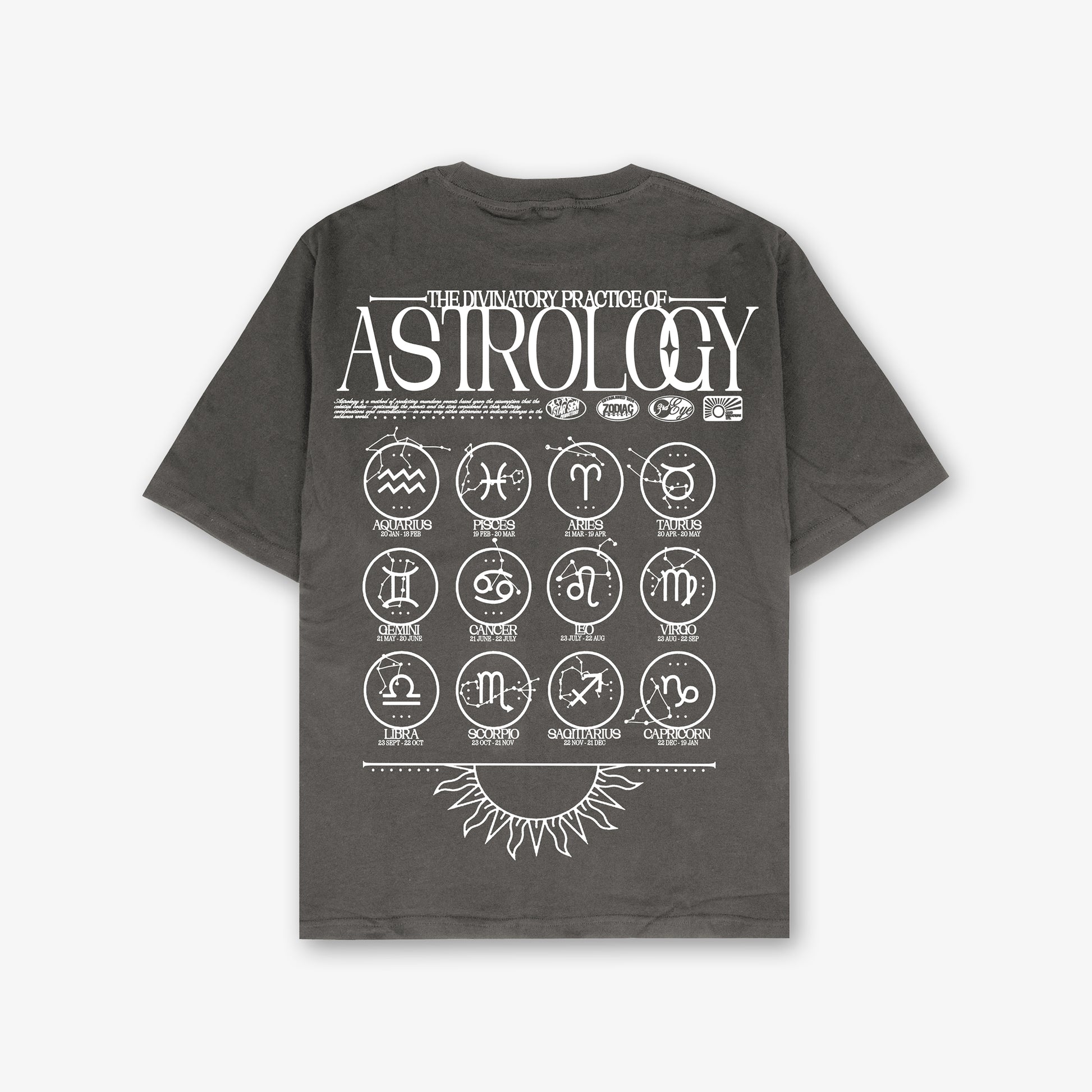 Astrology Front And Back Print Washed T-Shirt